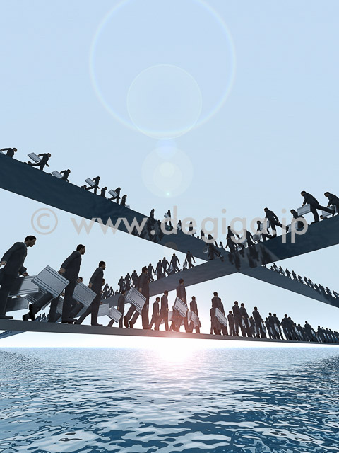 人は絶えず繋がりの中で生きています。そして互いに言葉を交わし時には思い悩む事もあるでしょう。ここに描かれた群衆は、さて何処へ向かうのか。